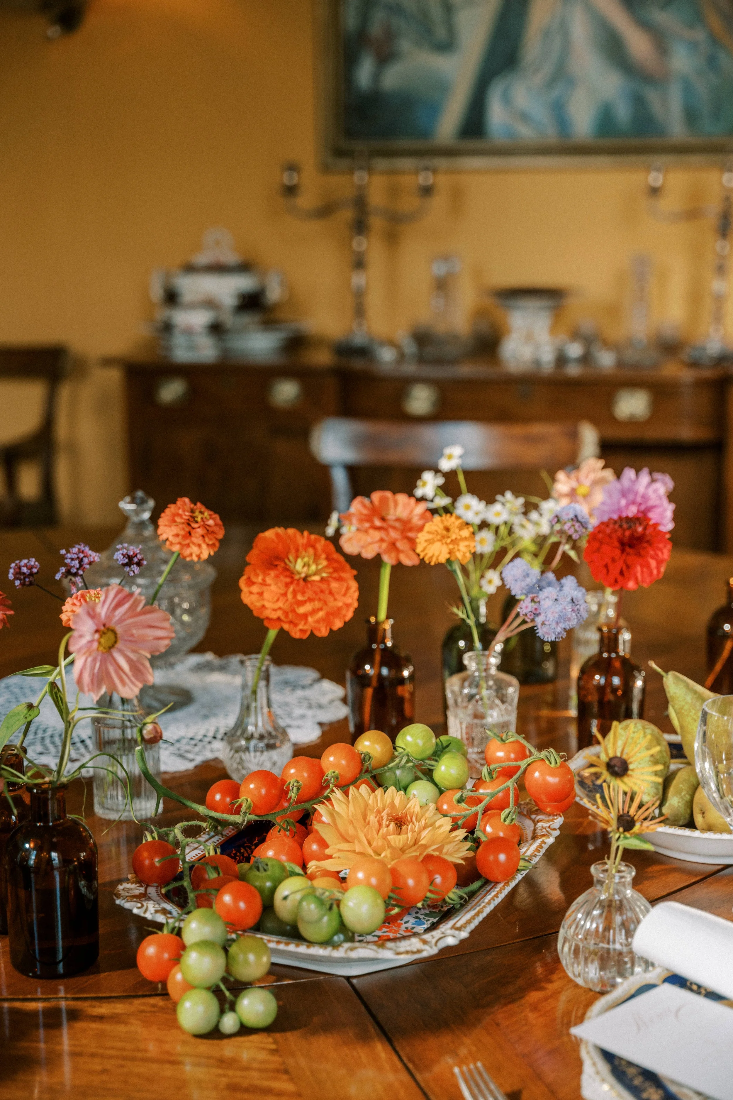 Tablescapes & Bud Vases: Seasonal arrangements for each table or clusters of small vases.